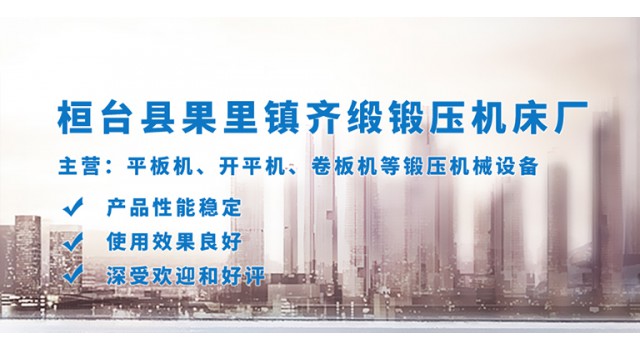 桓台县果里镇齐锻锻压机床厂是卷板机、法兰机、校平机、平板机、开平机等产品专业生产加工的私营独资企业,公司总部设在桓台县索镇,桓台县果里镇齐锻锻压机床厂拥有完整、科学的质量管理体系。桓台县果里镇齐锻锻压机床厂的诚信、实力和产品质量获得业界的认可。欢迎各界朋友莅临桓台县果里镇齐锻锻压机床厂参观、指导和业务洽谈。